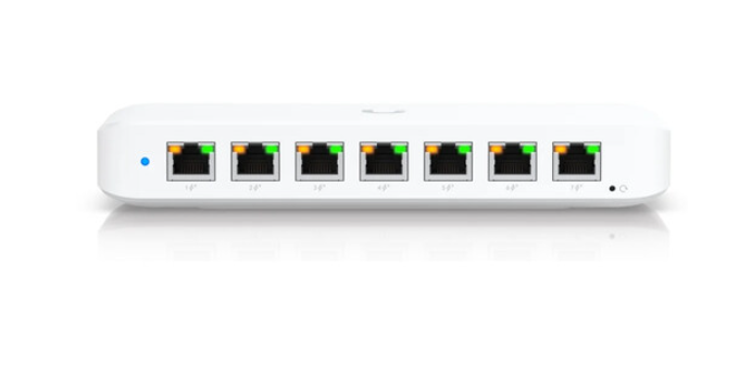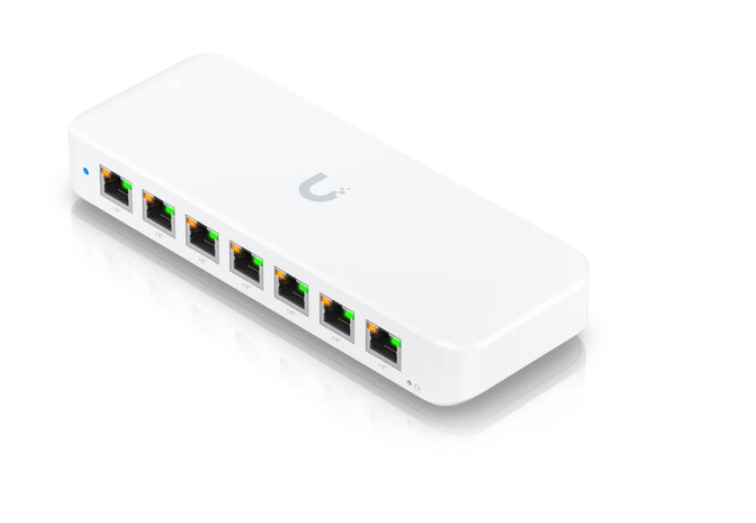 USW-Ultra-60W Ubiquiti Networks Ultra 60W 8-Port Gigabit PoE+ Compliant Managed Network Switch Designed for high versatility, the compact Ubiquiti Ultra 60W Managed Network Switch discreetly mounts onto a desktop or wall to operate powered devices such as IP cameras, VoIP phones, and access points. Seven of its Gigabit Ethernet ports support up to 30W PoE+ output with a total budget of 52W when using the included 60W AC power adapter. Alternatively, connecting the PoE++ input to a compatible power source provides a 42W budget.