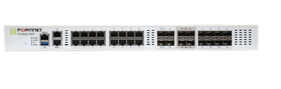 FG-400F-BDL-809-12 FortiGate-400F Hardware plus 1 Year Hardware plus FortiCare Premium and FortiGuard Enterprise Protection The FortiGate 400F Series NGFW combines AI-powered security and machine learning to deliver Threat Protection at any scale. Get deeper visibility into your network and see applications, users, and devices before they become threats. Powered by a rich set of AI/ML security capabilities that extend into an integrated security fabric platform, the FortiGate 400F Series delivers secure networking that is broad, deep, and automated. Secure your network end to end with advanced edge protection that includes web, content, and device security, while network segmentation and secure SD-WAN reduce complexity and risk in hybrid IT networks.