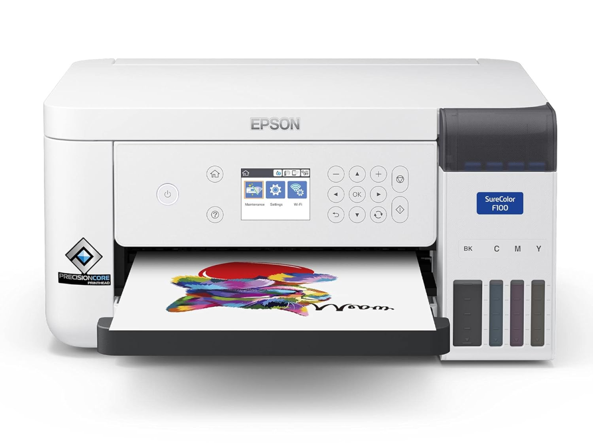 Epson SureColor SC-F100 This is Epson’s first A4 dye sublimation printer. With the footprint of an A4 desktop printer, the SC-F100 is perfect for producing promotional goods and personalised gifts such as mugs, key fobs, phone covers and other small merchandise items, when space is at premium. It also meets the needs of textile producers who want to create bespoke products such as, small bags, aprons, lanyards and cushions.